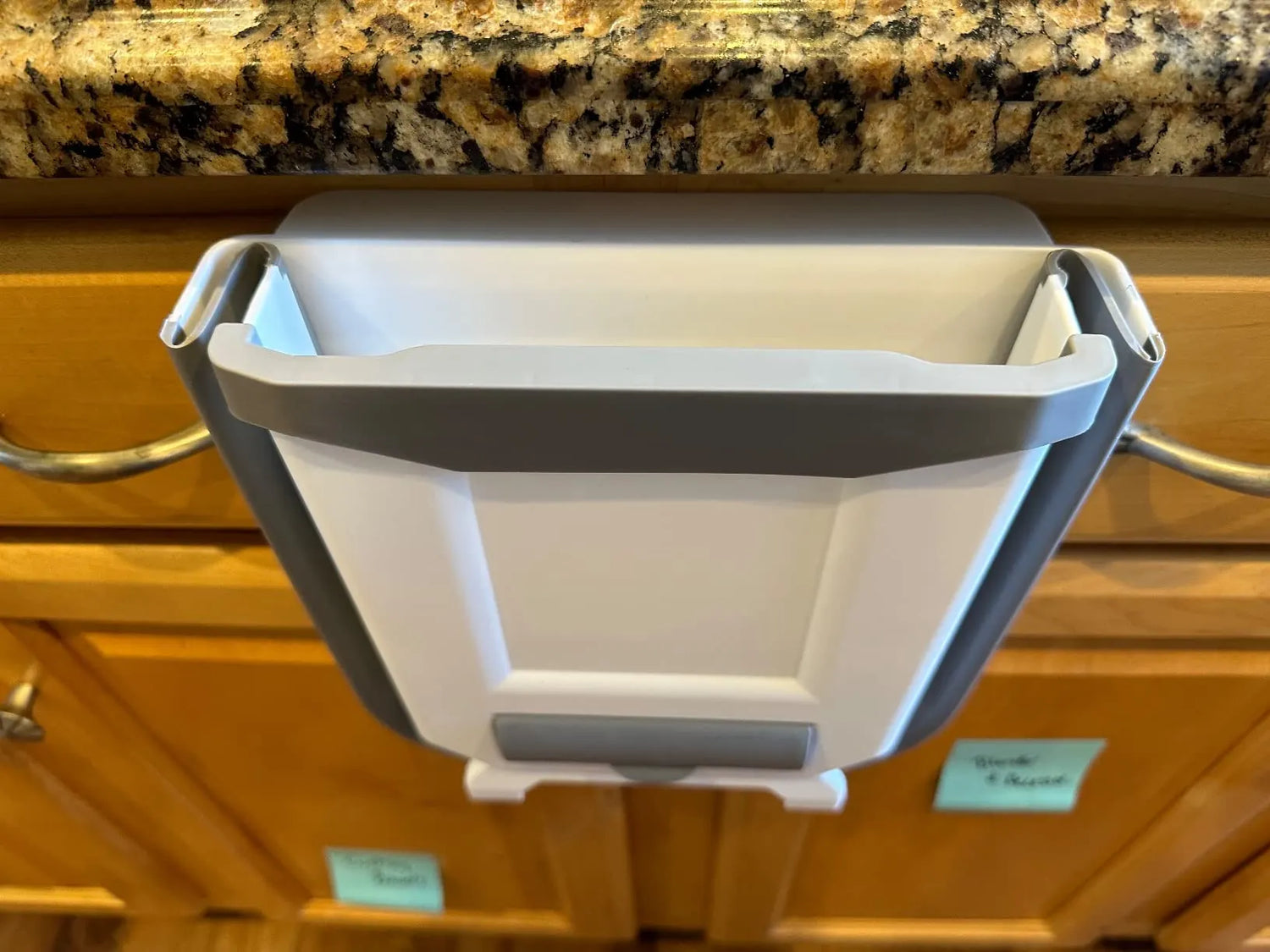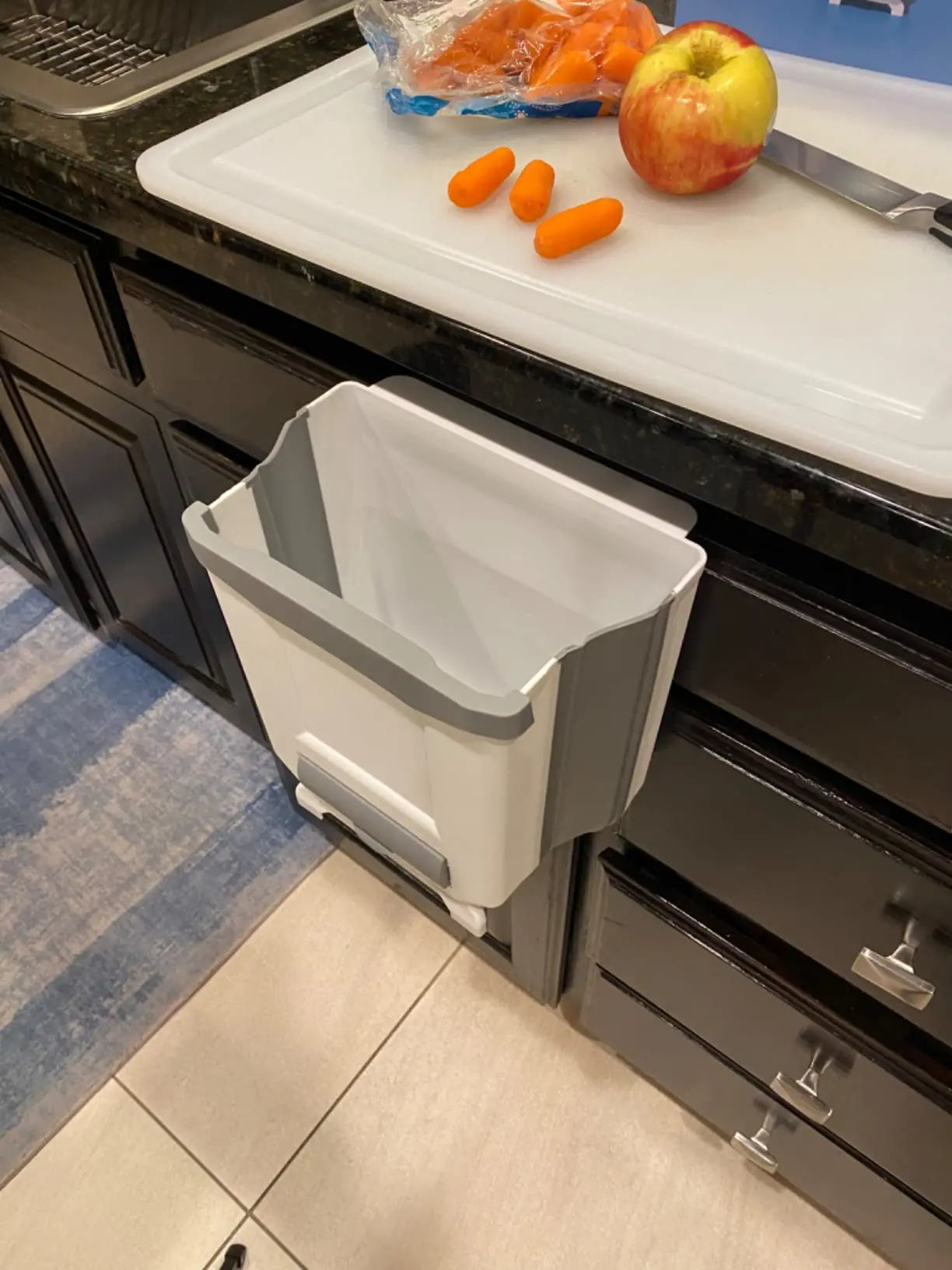 هذي سلال نفايات معلّقة توفر مساحة، تنعلق على درج أو باب دولاب تحت المغسلة أو الطاولة، وتخليك تقطع وتنظف وأنت تشتغل بدون ما تلمس الزبالة بيدك.