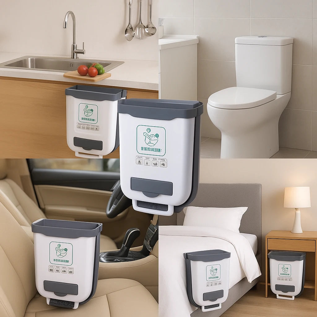 خلي مطبخك دايمًا نظيف ومرتب بدون فوضى أو روائح مزعجة — سلة القمامة القابلة للطي اللي توفر لك مساحة وتنظّم يومك بالمطبخ بكل سهولة وأناقة.
