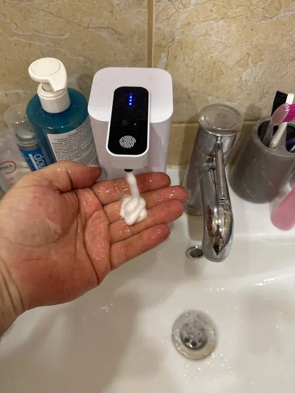 3. مد يدك تحت الحساس، الرغوة تطلع لحالها فورًا.